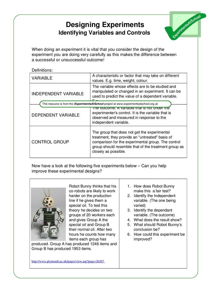 Design An Experiment Worksheet : 1 -